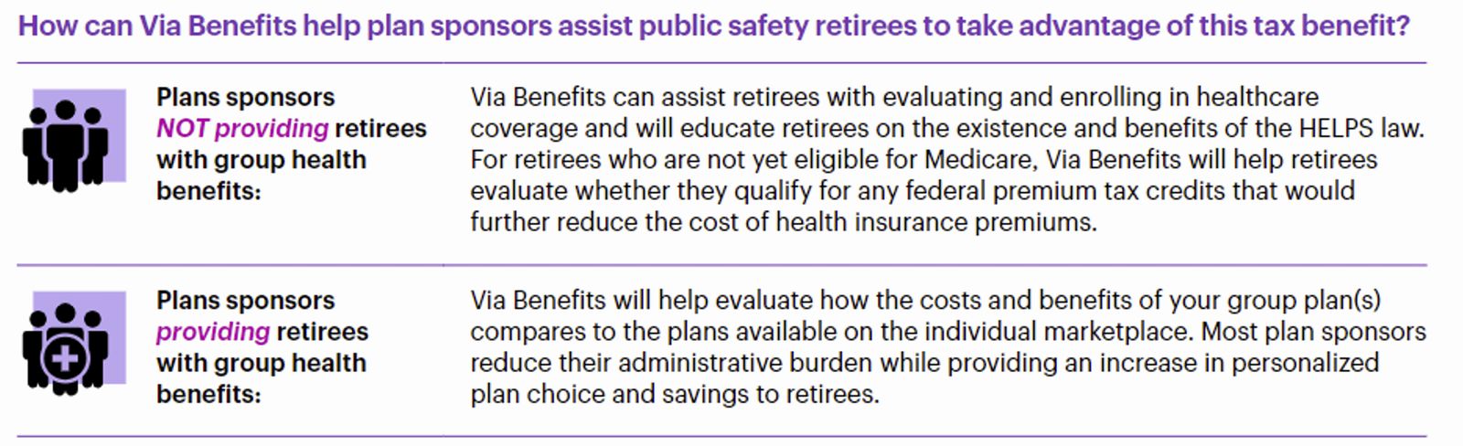 Recent legislation has led to important improvements to the Healthcare Enhancement for Local Public Safety (HELPS) Retirees Act. Eric Stanger at Via Benefits by WTW explains these updates and how public safety retirees can take better advantage of the pre-tax distributions that they earned as public safety officers.