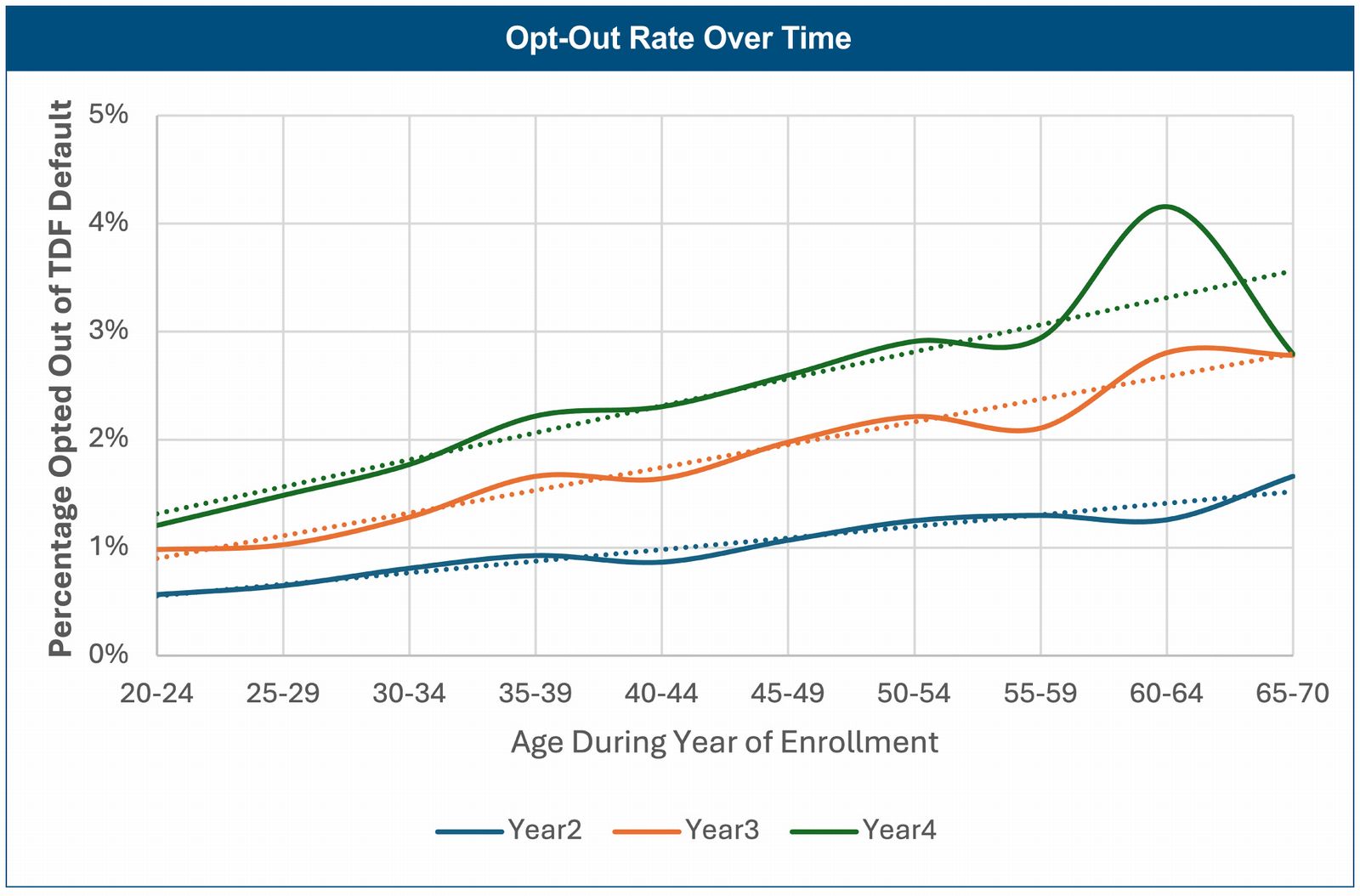 - Opt-Out Trends: While public plan participants' default opt-out rates are relatively lower, they increase with age and income.