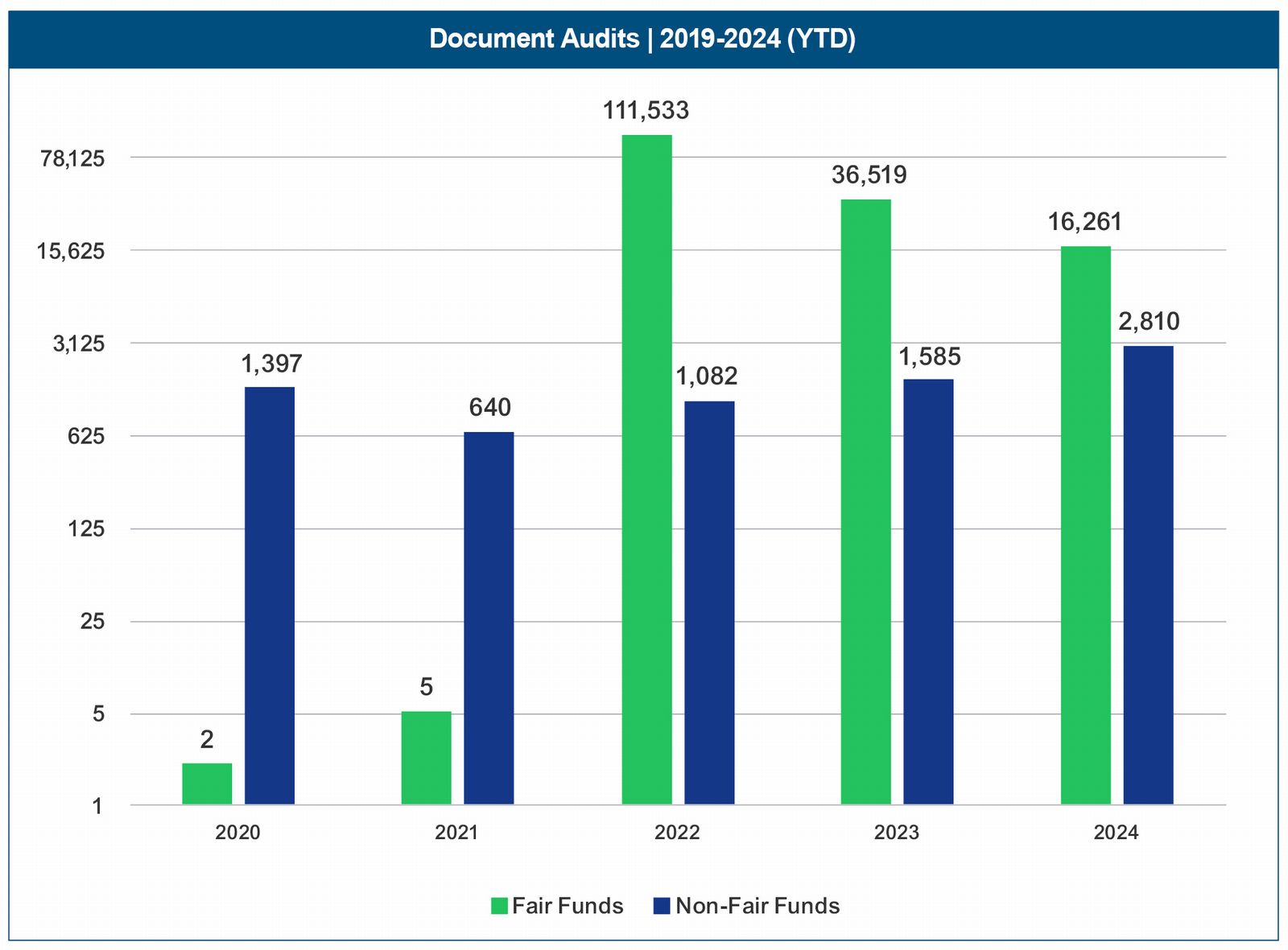 Claim administrators also have not taken a uniform approach to these requirements. More recently, however, we've seen more audit requests from the SEC and more strict enforcement by administrators. Through the first half of 2024, my team has tracked more than 16,000 Fair Fund-related audits on claims that FRT has submitted on behalf of institutional investors – continuing a larger three-year trend that we expect to persist.