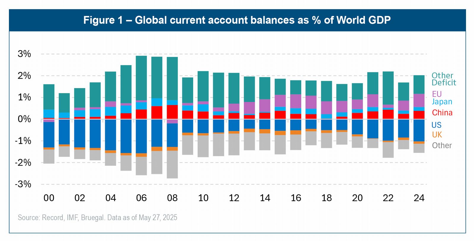 The US Dollar is at a pivotal juncture, with its real trade-weighted exchange rate recently exceeding the 1985 Plaza Accord peak The US now accounts for two-thirds of global current account deficits (Figure 1), raising concerns about imbalances and leading to speculation about a shift toward a weaker dollar policy.