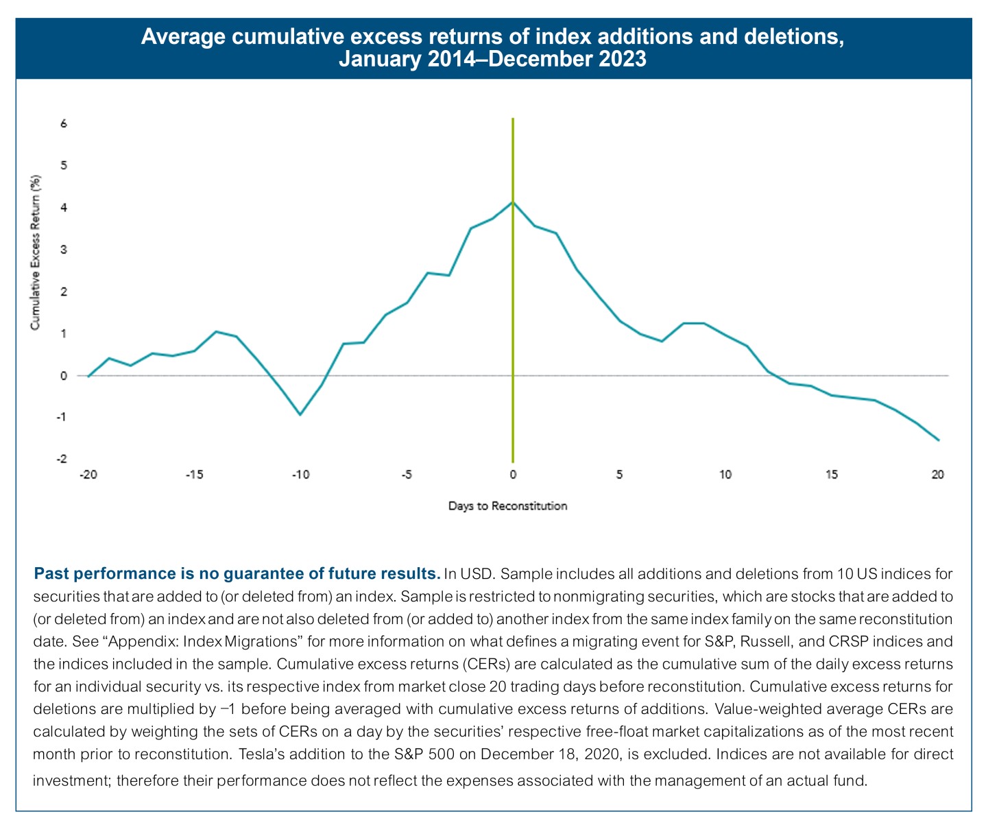 The highly regimented maintenance process indices periodically undergo leads to one of the more notable index fund drawbacks, and that’s the price impact during reconstitution events. Index providers tend to telegraph what changes are coming for their indices. Because the goal for index fund managers is to minimize tracking error, the market knows what they’re going to do and when they’re going to do it. When that’s the case, your execution is likely to suffer. Accordingly, the data show spikes in trade volume for securities being added to, or deleted from, indices, with commensurate impact on security prices. The result is index funds buying high and selling low—not a recipe for increasing expected return.