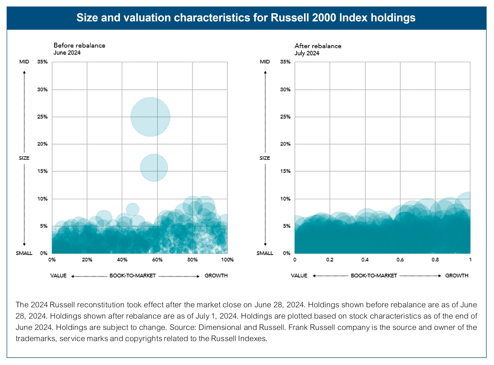 The information in this material is intended for the recipient’s background information and use only. It is provided in good faith and without any warranty or representation as to accuracy or completeness. Information and opinions presented in this material have been obtained or derived from sources believed by Dimensional to be reliable, and Dimensional has reasonable grounds to believe that all factual information herein is true as at the date of this material. It does not constitute investment advice, a recommendation, or an offer of any services or products for sale and is not intended to provide a sufficient basis on which to make an investment decision. Before acting on any information in this document, you should consider whether it is appropriate for your particular circumstances and, if appropriate, seek professional advice. It is the responsibility of any persons wishing to make a purchase to inform themselves of and observe all applicable laws and regulations. Unauthorized reproduction or transmission of this material is strictly prohibited. Dimensional accepts no responsibility for loss arising from the use of the information contained herein.
