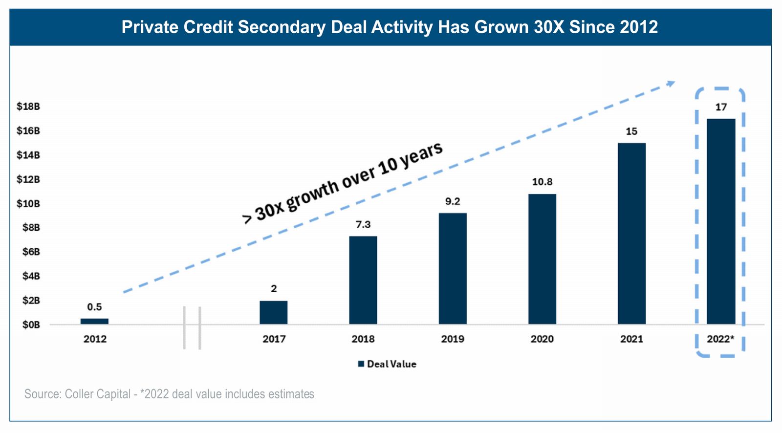 Following in the footsteps of the boom in the private equity market, the Global Financial Crisis accelerated the growth of a fourishing private credit market. Inherently, like we saw in private equity, this growing pool of illiquid private credit fund investments creates opportunities for investors to buy and sell existing investments in private credit funds in the same way, creating what we now call the private credit secondaries market. Just as there are differences in the private equity secondaries market based on the underlying fund strategies across geographies, company sizes, or type of equity investments, there are also numerous focus areas within private credit secondaries and the competitiveness and attractiveness for investors can vary based on simple supply demand dynamics. Limited buyers exist with the origination capability, due diligence skills, and strategic focus to acquire smaller credit-oriented secondary assets, creating high barriers to entry and opportunities for specialized lower middle-market private credit secondaries managers to benefit from this supply-demand imbalance.