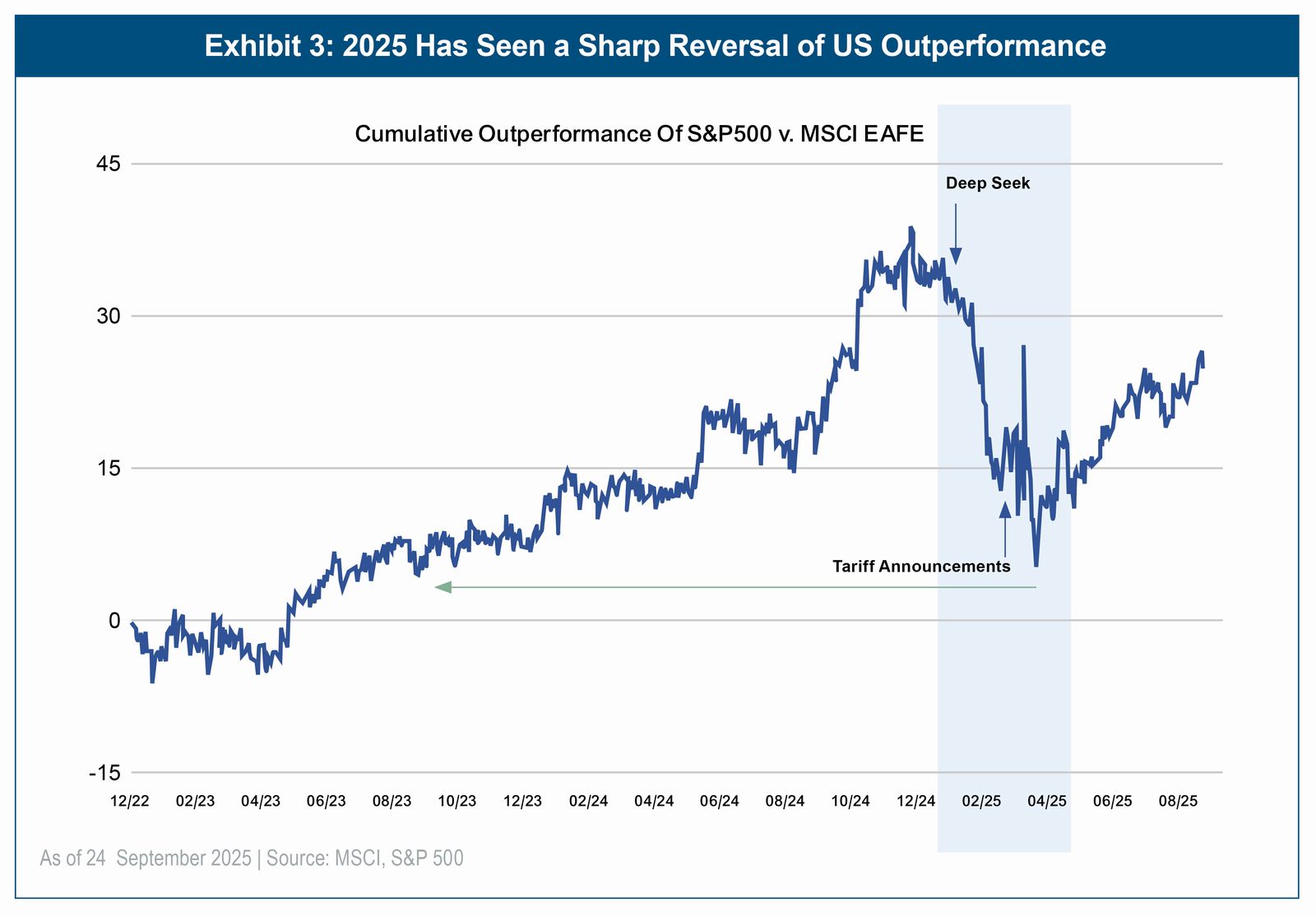 We believe ongoing macroeconomic and geopolitical uncertainty is driving significant changes in investor sentiment—particularly in the United States, where performance patterns that once seemed unbreakable are being called into question.