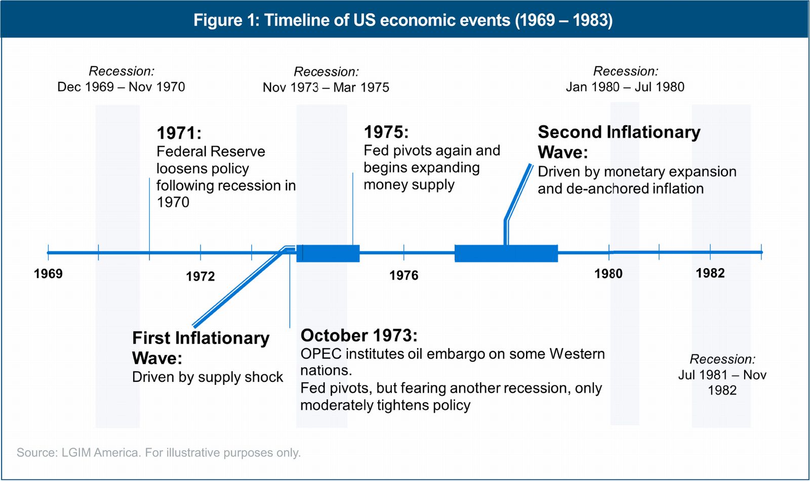 Though not exact, it's hard not to notice the substantial similarities between the economic and political circumstances of today and of a half-century ago. Proxy conflicts with Russia, ongoing wars in the Middle East, and a bitterly divided government and electorate dominate the headlines today as they did in the 1970s. But perhaps the most striking resemblance is reflected by the current economic situation and expected path forward.