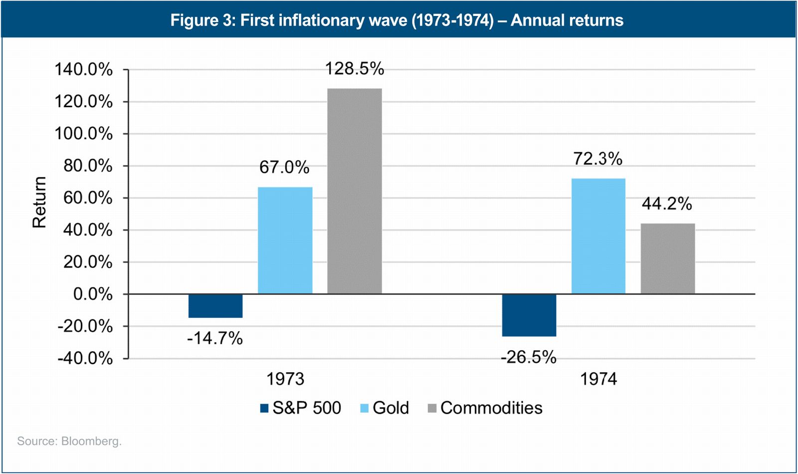 The challenges of a half-century ago bear an uncanny resemblance to the risks that we face today. In the 1970s, real returns on traditional 60/40 portfolios were eroded to almost nothing due to a mix of domestic political troubles, conflicts in the Middle East and, most directly, recurring waves of inflation. If this sounds familiar, institutional investors may need to consider allocating to an alternative asset class to preserve portfolio returns. Using history as a guide, LGIM America believes commodities may be an appropriate fit.
