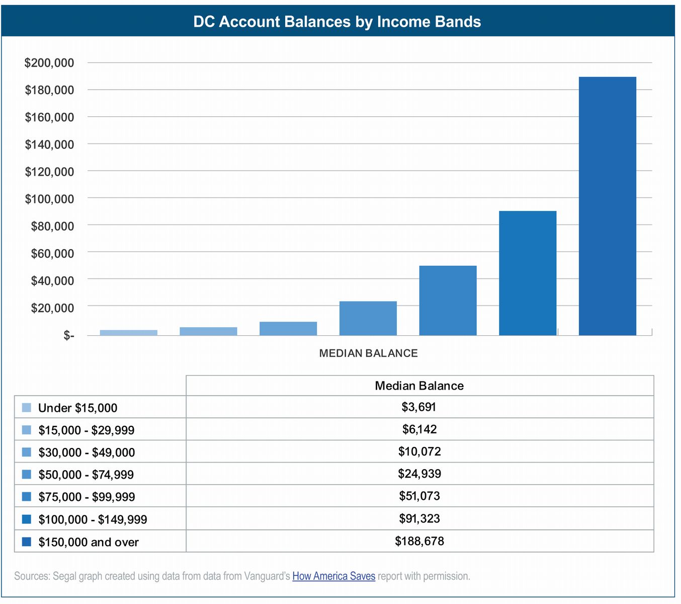 Analyzing defined contribution (DC) plan balances shows some startling results. In general, they don't appear to be enough to sustain even modest retirement income levels.
